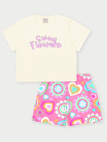 Este conjunto para menina, do tamanho 01 ao 08, foi pensado para unir conforto e charme em cada detalhe, com tecidos de toque leve e delicado, ideais para a rotina das pequenas.