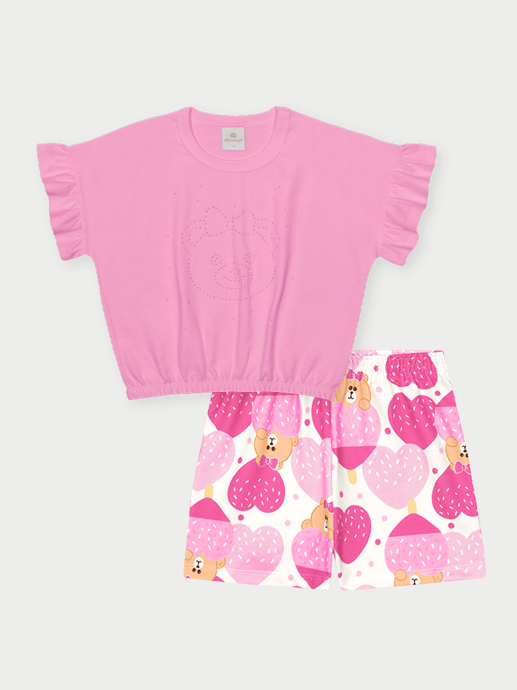 Este conjunto para menina, do tamanho 01 ao 08, foi pensado para oferecer conforto com um toque encantador e delicado.