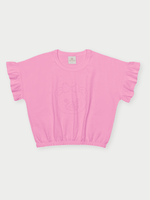 A blusa em modelagem boxy tem toque leve, macio e arejado, ideal para os dias mais quentes. O caimento solto e mais curtinho garante liberdade de movimento, enquanto o detalhe de babados nas mangas e a aplicação de strass em formato de rostinho de urso trazem um charme especial. O elástico na barra proporciona ajuste confortável ao corpo da menina, sem apertar.