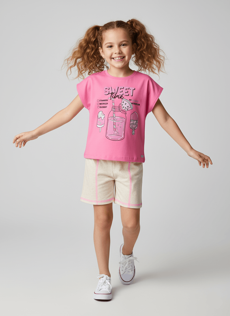 MeninasConjuntos CurtosConjunto Menina Sweet Time Rosa Abrange