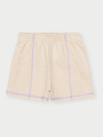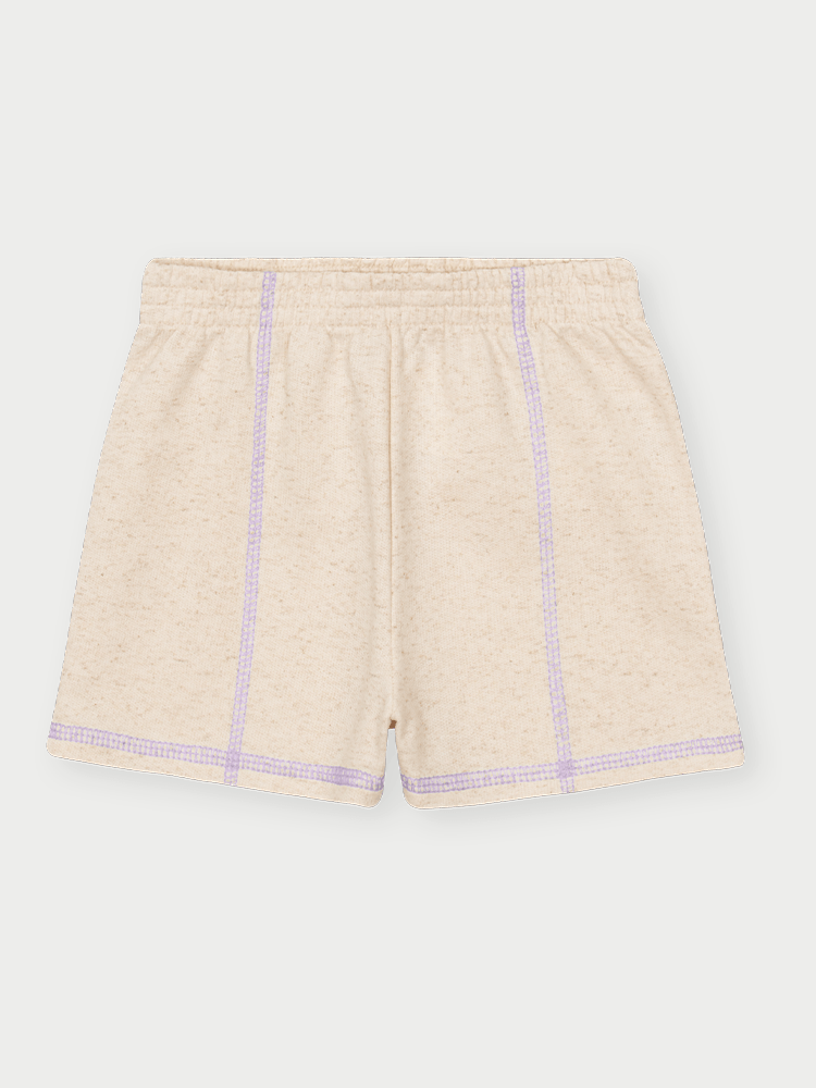 O short em moletom linho tem toque suave com leve textura, sendo mais encorpado que o moletinho tradicional, mas ainda fresco e confortável. O elástico na cintura garante praticidade e ajuste ideal, enquanto a costura em cor contrastante adiciona um detalhe estiloso à peça.