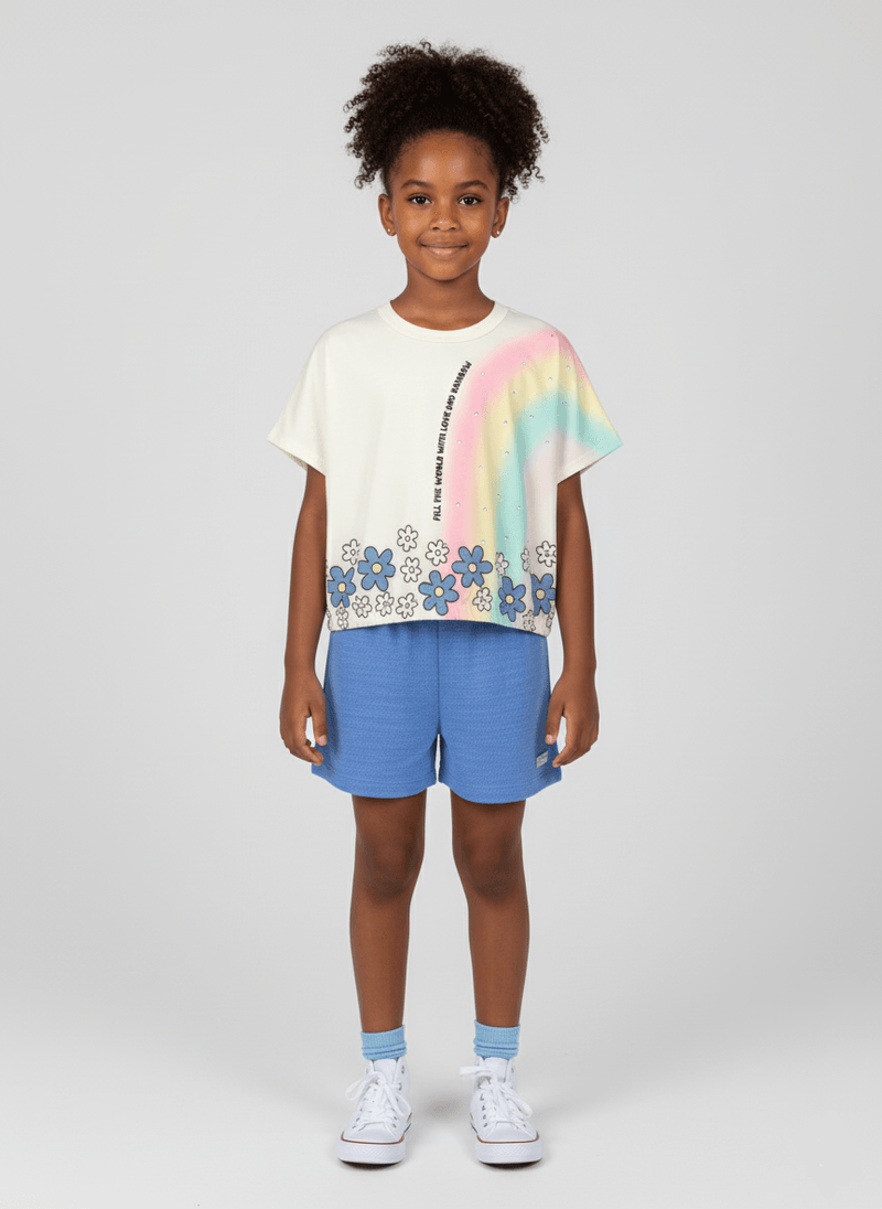MeninasConjuntos CurtosConjunto Infantil Menina Arco-Irís Azul Abrange