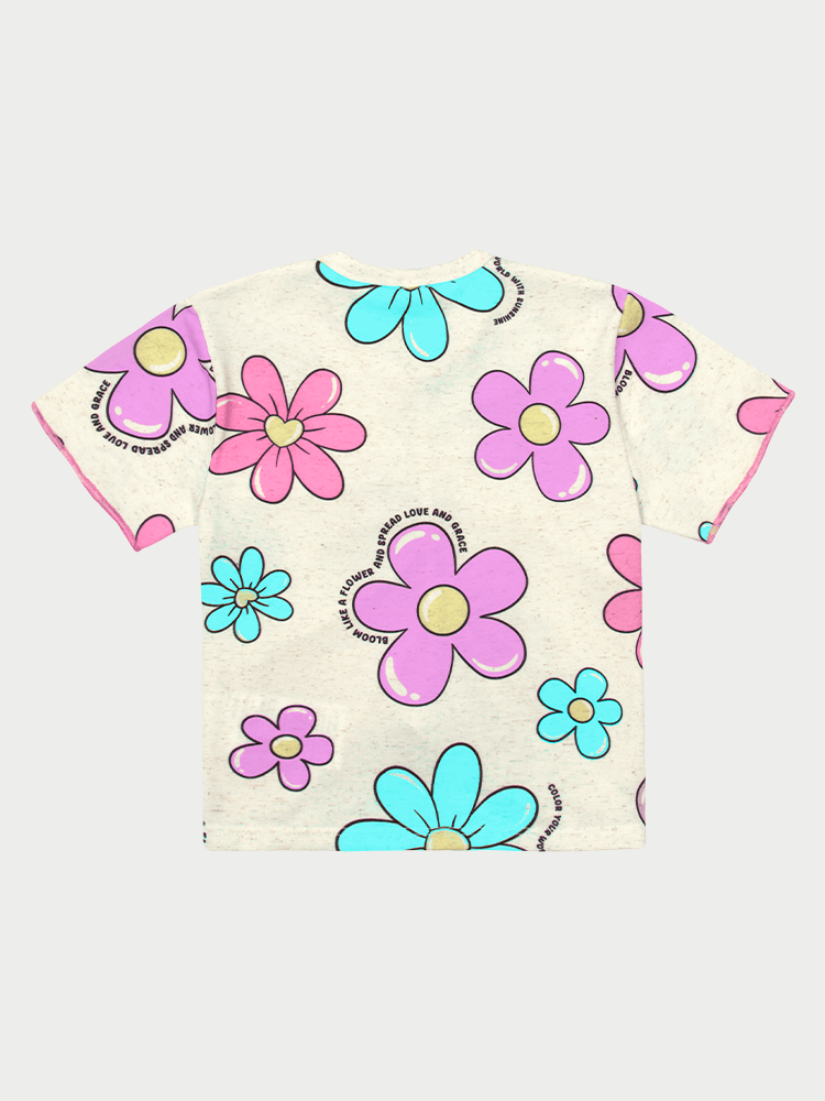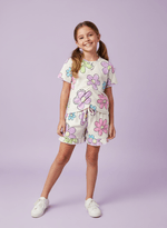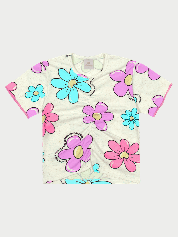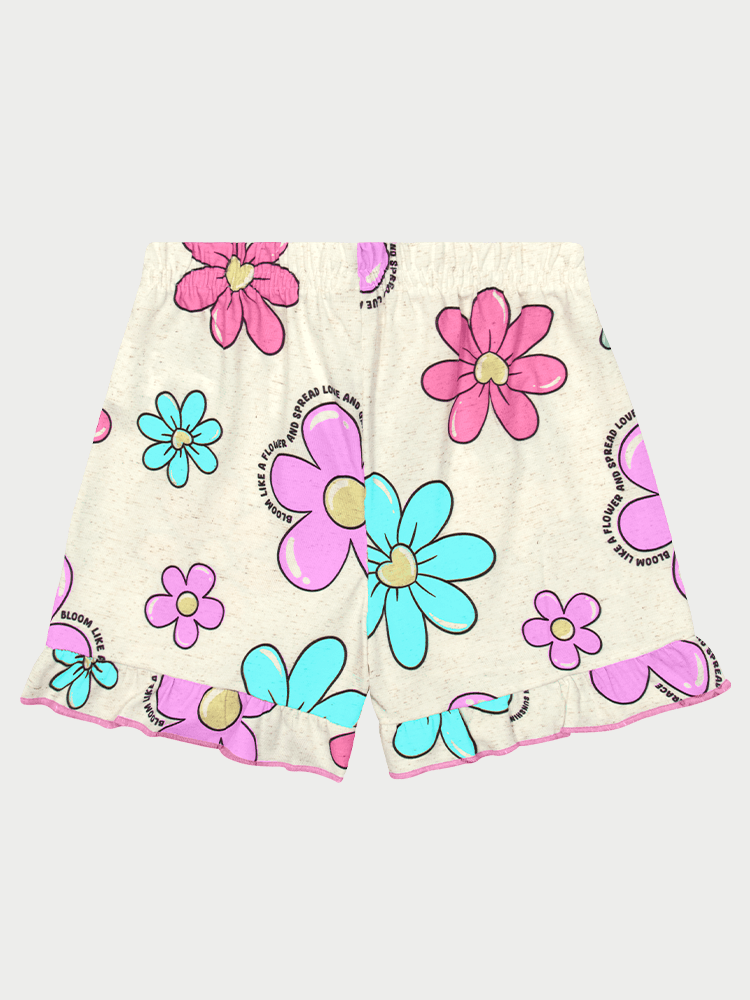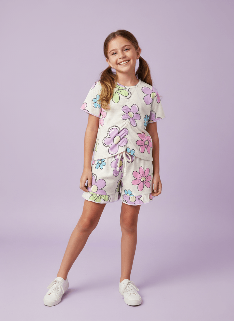 Deixe os dias da sua menina ainda mais alegres com este conjunto infantil de blusa e shorts estampados com flores coloridas. Desenvolvido em tecido de alta qualidade, é a escolha perfeita para unir conforto e estilo em todas as ocasiões.
