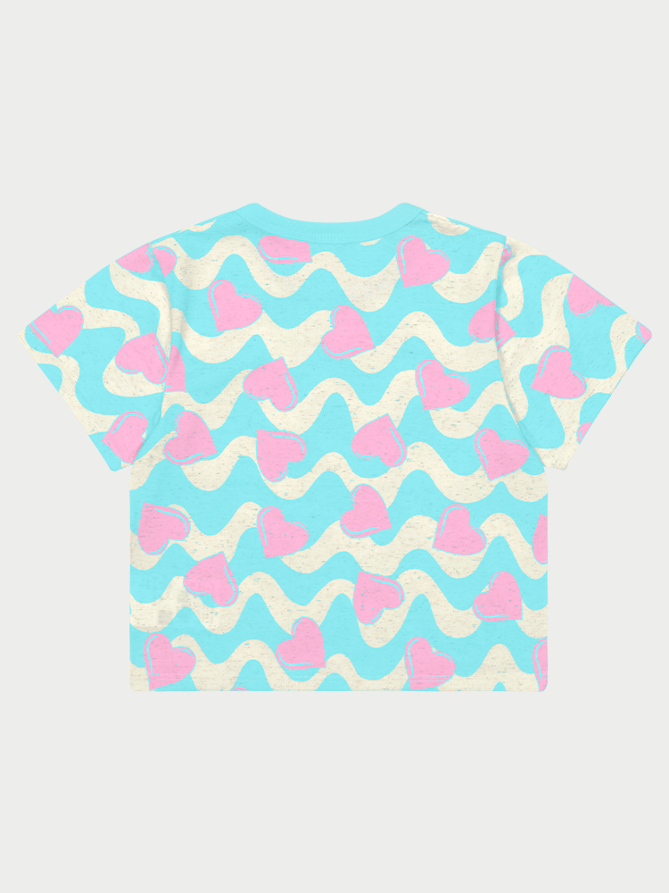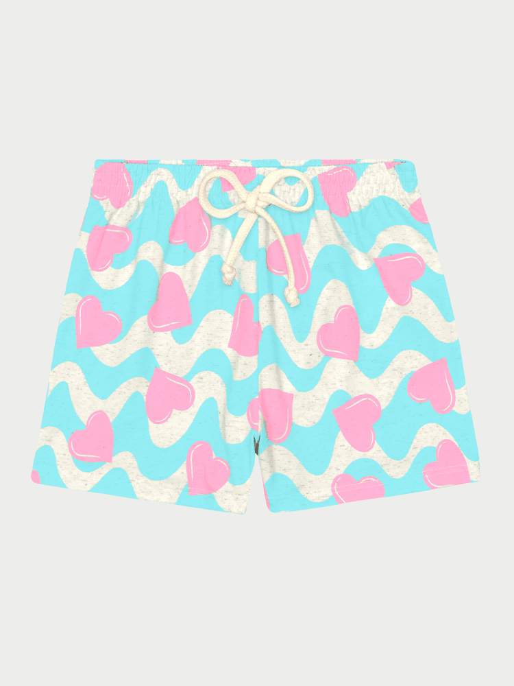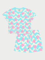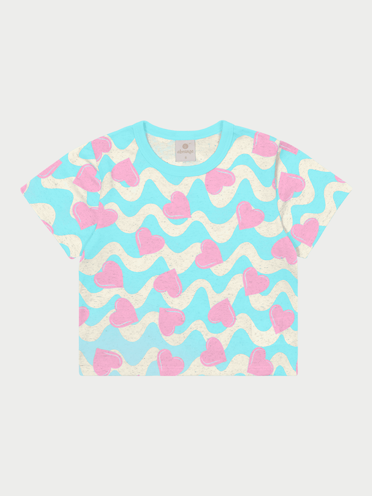 O diferencial do conjunto está na estampa divertida e cheia de personalidade: corações coloridos sobre um fundo em efeito ondulado, que traz modernidade e um ar lúdico à peça. Disponível em diferentes combinações de cores, é uma opção alegre e versátil para acompanhar as crianças em momentos de lazer, passeios ou encontros em família.
