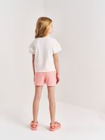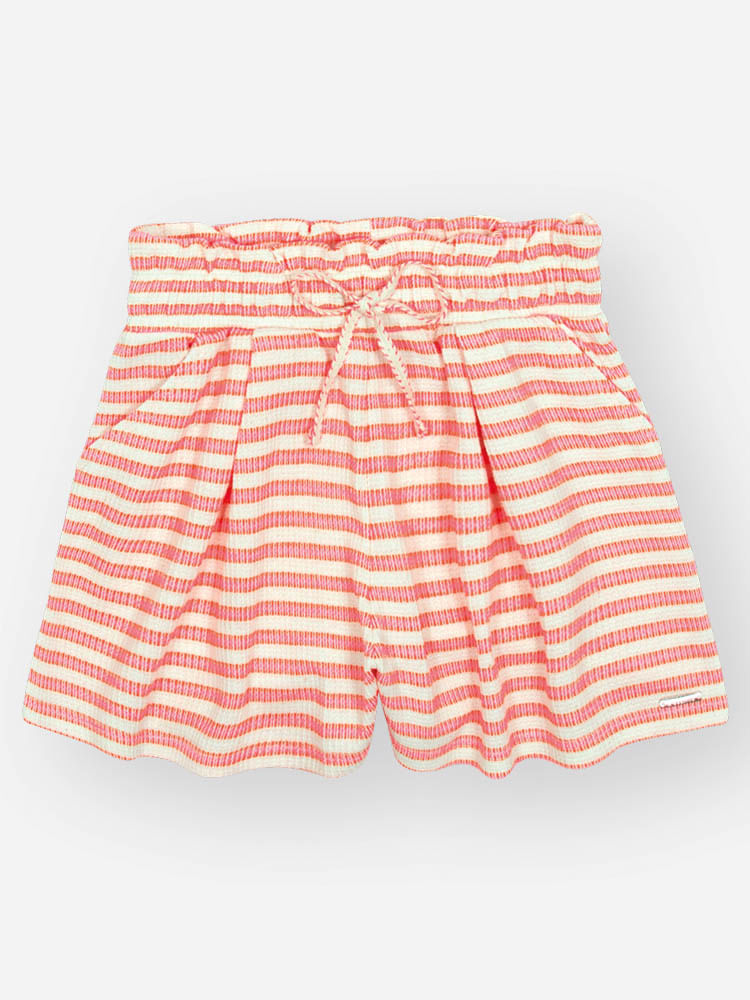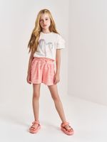O shorts em tricot, feito com 66% poliéster, 20% algodão e 14% viscose, tem um tecido macio, encorpado e maleável, que se adapta bem ao corpo sem perder a forma. A mistura de fibras garante resistência, suavidade no toque e leve elasticidade, permitindo que a criança brinque e se movimente com total liberdade. O cós com elástico e amarração funcional traz praticidade e ajuste perfeito.