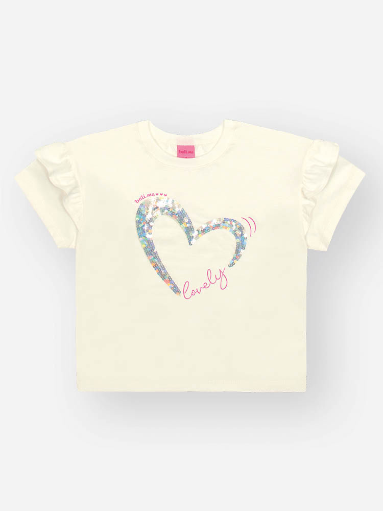 A blusa em meia malha é confeccionada em 100% algodão, oferecendo toque macio e respirável, ideal para a pele sensível das crianças. Seu caimento leve proporciona conforto durante todo o dia, enquanto os babadinhos nas mangas e a estampa com bordado de lantejoulas adicionam um toque divertido e fashion.