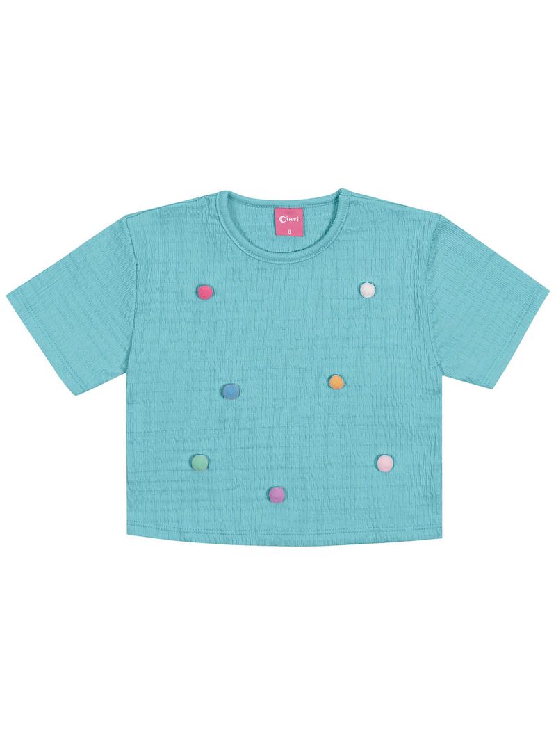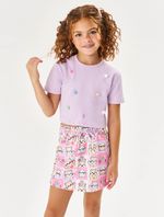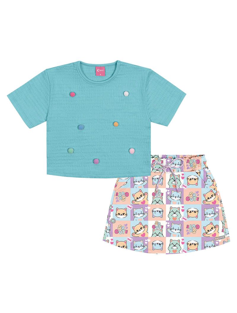 Conjunto Infantil Menina Blusa Com Pompom E Short-Saia Azul E Lilás Cinti
