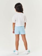 Conjunto perfeito para um look moderno e confortável. A blusa cropped em meia malha destaca-se pelo franzido delicado nas mangas, que adiciona um toque de charme e sofisticação. A estampa frontal com strass proporciona um brilho elegante e divertido. O short-saia em moletinho é projetado para oferecer conforto e estilo, com elástico e cadarço decorativo no cós que garantem um ajuste perfeito e ajustável. Os bolsos frontais adicionam um detalhe prático e estiloso, enquanto a etiqueta decorativa próxima da bainha completa o visual com um toque de sofisticação. Ideal para brincar e explorar, este conjunto combina o melhor em conforto e moda, tornando-o uma escolha versátil para qualquer ocasião. Alto Verão 2024/2025. A modelo veste tamanho 6 e possui 1,17cm de altura.