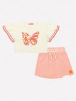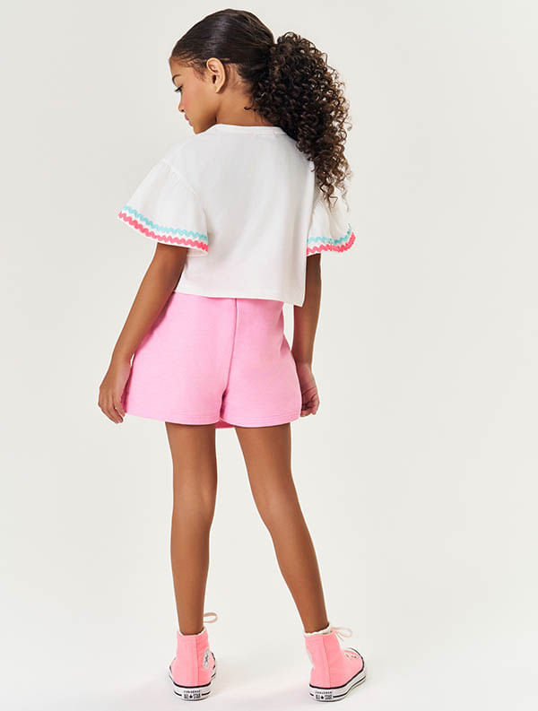 Conjunto oferece uma combinação perfeita de estilo e conforto para os pequenos. A blusa cropped em meia malha é adornada com sianinhas nas mangas, conferindo um toque delicado e charmoso. A estampa frontal de borboleta, com detalhes em strass, adiciona um brilho divertido e elegante. O short-saia, confeccionado em moletom, garante conforto durante todo o dia e possui um cós elástico com cadarço decorativo para um ajuste ajustável e estiloso. A saia sobreposta, com abertura frontal, oferece um visual dinâmico e moderno, enquanto a etiqueta decorativa próxima da bainha adiciona um detalhe sofisticado. Perfeito para passeios e ocasiões especiais, este conjunto combina moda e praticidade, garantindo que os pequenos estejam sempre confortáveis e na moda. Alto Verão 2024/2025. A modelo veste tamanho 6 e possui 1,20cm de altura.