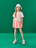 O Conjunto Infantil Blusa em Meia Malha com Saia-Short em Moletom combina conforto e estilo em uma peça prática e moderna para o dia a dia das meninas.