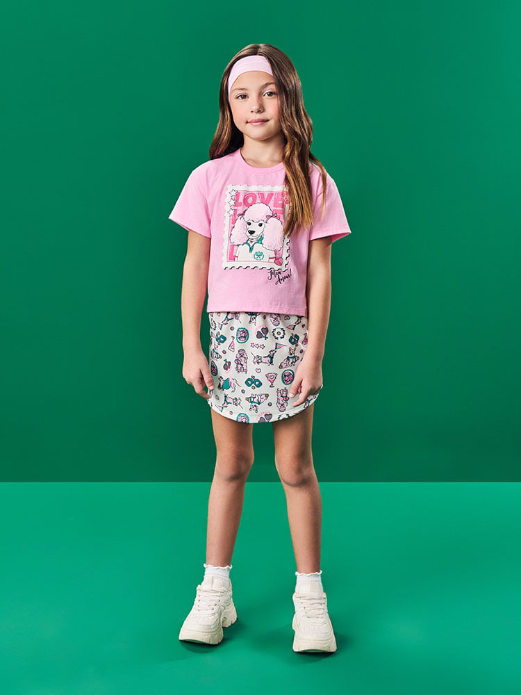 O Conjunto Infantil Blusa Boxy em Meia Malha com Saia-Short em Molecotton Light é perfeito para unir estilo moderno e praticidade em um só look. Cheio de personalidade, ele traz uma proposta fashion e ao mesmo tempo confortável para o dia a dia das meninas.