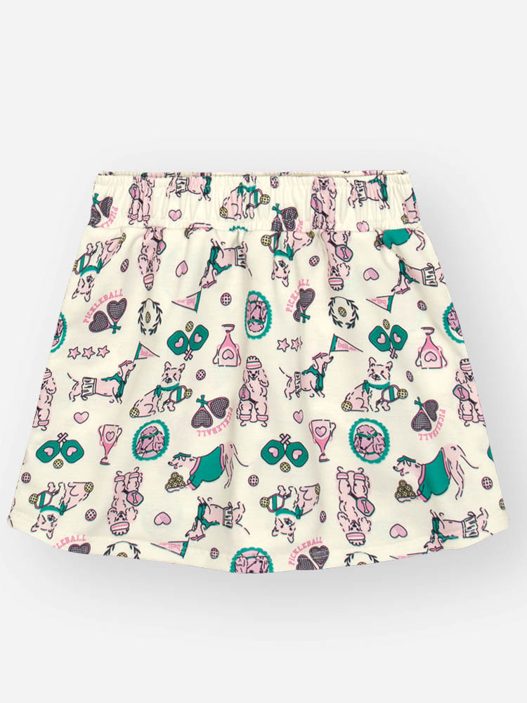 A saia-short em molecotton light, com 97% poliéster e 3% elastano, combina resistência, toque macio e elasticidade na medida certa. O tecido é encorpado, porém leve, garantindo maleabilidade e conforto, enquanto o shorts interno oferece praticidade e segurança extra para brincar e se movimentar sem preocupações.