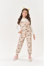 Conjunto encantador e confortável, composto por uma blusa básica em cotton, perfeita para compor looks casuais com praticidade. A jardineira em moletom linho felpado oferece aconchego e estilo, com alças ajustáveis por botões, proporcionando um ajuste personalizado. O cós com elástico nas costas garante conforto, enquanto os bolsos frontais adicionam um toque de funcionalidade e charme. A estampa total de ursinhos traz um ar fofinho e divertido à peça, e os elásticos nos punhos completam o look com um toque moderno. Ideal para o dia a dia, esse conjunto combina conforto, estilo e um visual adorável para as pequenas. Coleção Inverno 2025. A modelo veste tamanho 06 e possui 1,22cm de altura.