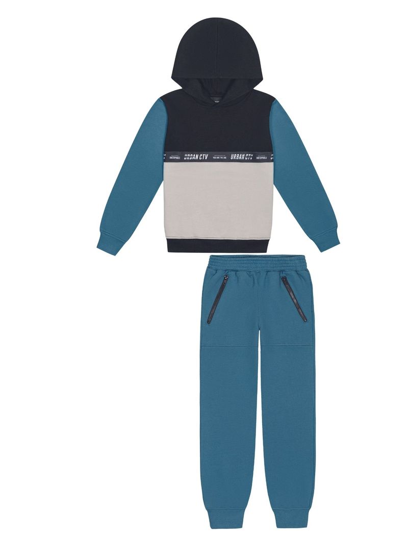 Conjunto Blusão Com Recorte E Calça Azul Catavento