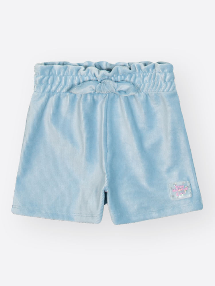 O shorts possui cós colocado com elástico, criando um efeito franzido e estiloso. É finalizado com um laço em molde e uma etiqueta emborrachada Snow Friends.