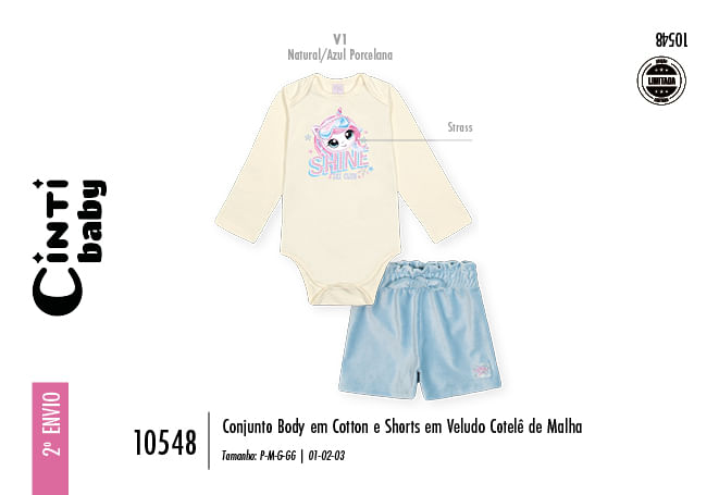 Este conjunto é ideal para criar um look completo, confortável e cheio de fantasia para a sua bebê."