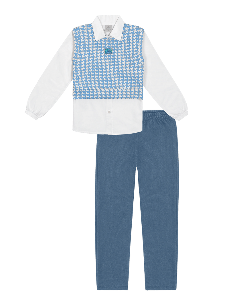 MeninasConjuntos LongosConjunto Camisa Calça E Colete Branco Azul E Azul Jeans Médio Abrange
