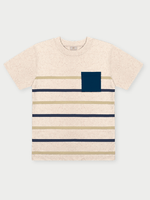 A camiseta é confeccionada em meia malha de toque leve, macio e confortável, ideal para climas mais quentes e para o uso prolongado. O decote redondo com aplicação de friso em ribana garante um ajuste suave ao pescoço, com mais resistência ao uso frequente. A peça se destaca com a estampa de listras e a aplicação de bolso em moletom, que traz textura e um toque diferenciado, acrescentando estilo à composição.