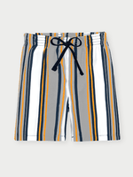A bermuda, feita em tactel surf, possui um toque liso e fresco, com secagem rápida e ótima mobilidade — ideal para atividades ao ar livre e momentos de lazer. O cós com elástico proporciona ajuste confortável e prático, enquanto o cadarço não funcional e a estampa listrada em sublimação reforçam o visual despojado e divertido.