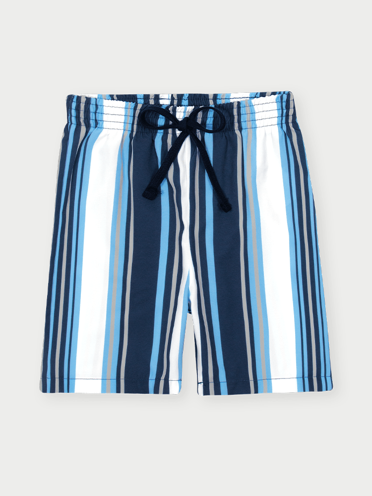 A bermuda, feita em tactel surf, possui um toque liso e fresco, com secagem rápida e ótima mobilidade — ideal para atividades ao ar livre e momentos de lazer. O cós com elástico proporciona ajuste confortável e prático, enquanto o cadarço não funcional e a estampa listrada em sublimação reforçam o visual despojado e divertido.
