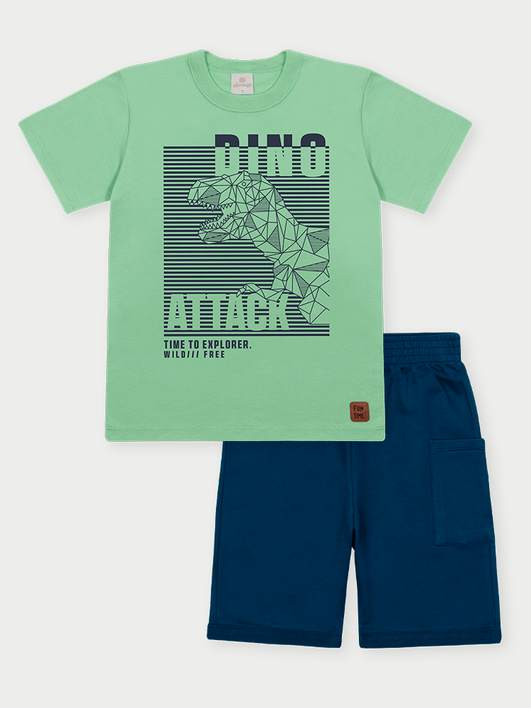 MeninosConjuntos CurtosConjunto Menino Dino Attack Verde Abrange