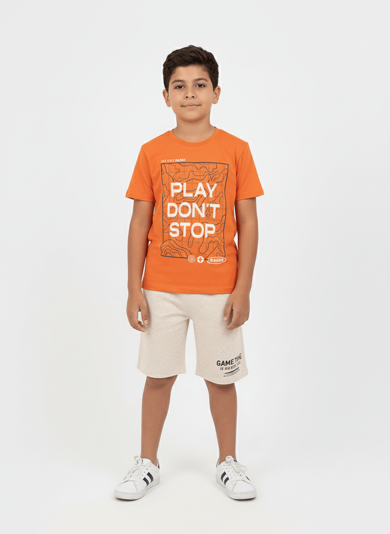 MeninosConjuntos CurtosConjunto Menino Play Don't Stop Laranja Abrange