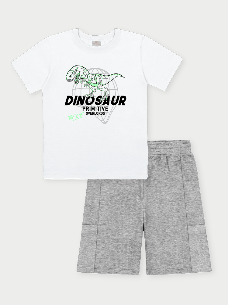 O conjunto para menino, disponível nos tamanhos 04 ao 14, une conforto e diversão em um visual cheio de estilo. Composto por camiseta e bermuda, chega nas cores branco, azul e laranja — opções modernas e versáteis para os dias de brincadeira.