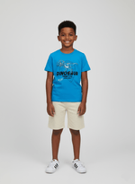 O conjunto para menino, disponível nos tamanhos 04 ao 14, une conforto e diversão em um visual cheio de estilo. Composto por camiseta e bermuda, chega nas cores branco, azul e laranja — opções modernas e versáteis para os dias de brincadeira.
