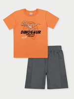 O conjunto para menino, disponível nos tamanhos 04 ao 14, une conforto e diversão em um visual cheio de estilo. Composto por camiseta e bermuda, chega nas cores branco, azul e laranja — opções modernas e versáteis para os dias de brincadeira.