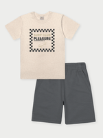O conjunto para menino, disponível nos tamanhos 04 ao 14, é a escolha ideal para quem busca estilo e conforto no dia a dia das crianças. Composto por camiseta e bermuda, está disponível nas cores off white, verde e branco — tons modernos e fáceis de combinar.