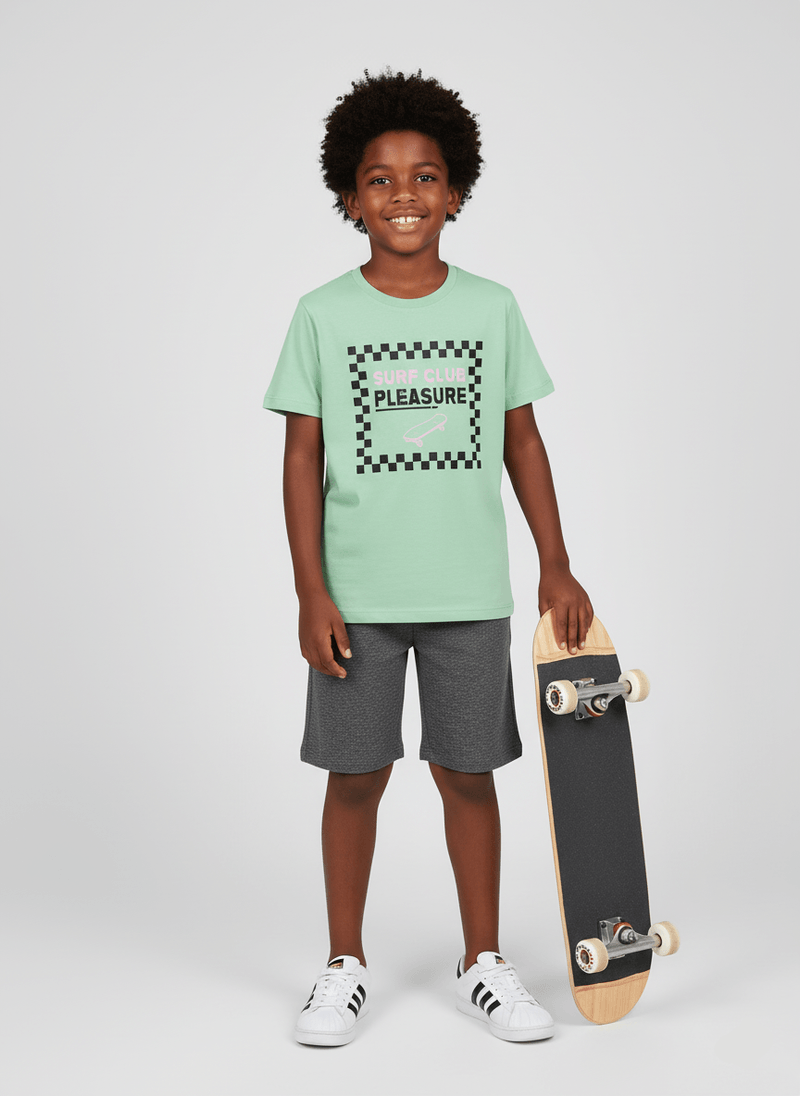 O conjunto para menino, disponível nos tamanhos 04 ao 14, é a escolha ideal para quem busca estilo e conforto no dia a dia das crianças. Composto por camiseta e bermuda, está disponível nas cores off white, verde e branco — tons modernos e fáceis de combinar.