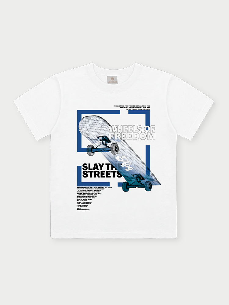 A camiseta tem toque leve, macio e agradável à pele, ideal para os dias mais quentes. Seu decote redondo com aplicação de friso em ribana garante ajuste confortável e durabilidade, enquanto a estampa frontal de skate com letterings inspira atitude e energia.