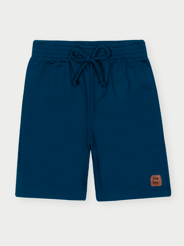 Já a bermuda é confeccionada em moletom de toque encorpado e suave, que oferece aconchego sem abrir mão da leveza. O elástico na cintura proporciona caimento seguro e confortável, e o detalhe do cadarço decorativo no cós, junto à etiqueta aplicada próximo à barra, acrescenta um charme extra ao visual.