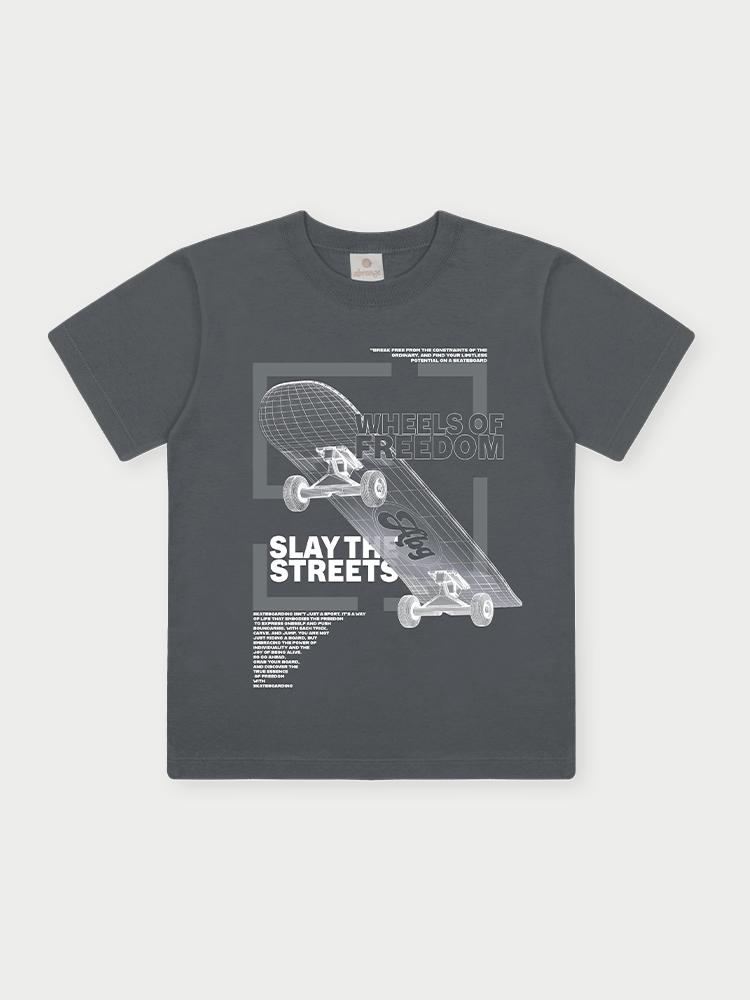 A camiseta tem toque leve, macio e agradável à pele, ideal para os dias mais quentes. Seu decote redondo com aplicação de friso em ribana garante ajuste confortável e durabilidade, enquanto a estampa frontal de skate com letterings inspira atitude e energia.