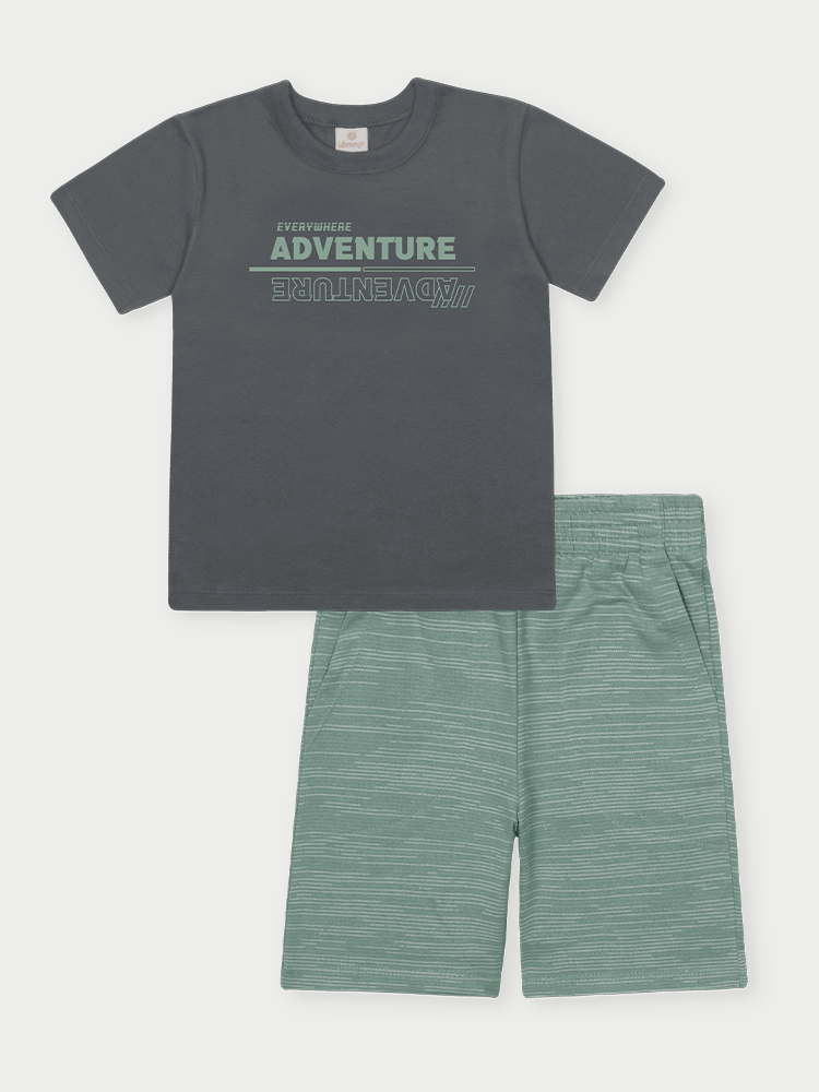 Este conjunto para menino, disponível nos tamanhos 04 ao 14, combina conforto e estilo em peças ideais para o dia a dia. Composto por camiseta e bermuda, o modelo está disponível em três cores versáteis: chumbo, branco e natural.