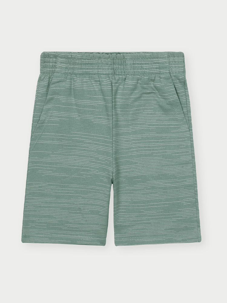 Já a bermuda, feita em moletom riscado, possui toque suave com leve textura, sendo ao mesmo tempo aconchegante e ideal para o uso diário. O elástico na cintura proporciona um ajuste confortável, e os bolsos frontais funcionais oferecem praticidade.