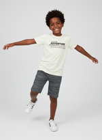 A camiseta é confeccionada em meia malha de toque extremamente macio e agradável ao vestir, oferecendo leveza e boa respirabilidade para os dias mais quentes. O decote redondo com friso em ribana garante um acabamento confortável e firme, enquanto a estampa frontal em lettering “Adventure” reforça o espírito aventureiro e moderno da peça.