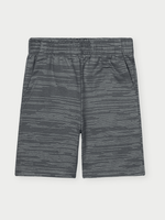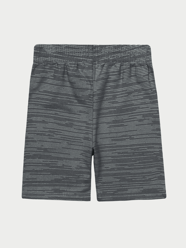 Já a bermuda, feita em moletom riscado, possui toque suave com leve textura, sendo ao mesmo tempo aconchegante e ideal para o uso diário. O elástico na cintura proporciona um ajuste confortável, e os bolsos frontais funcionais oferecem praticidade.