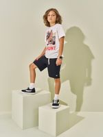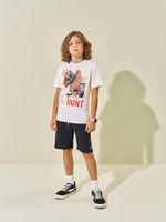 - Bermuda confortável com ajuste prático e etiqueta temática decorativa