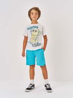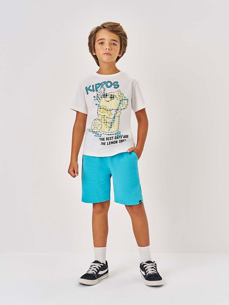 O conjunto infantil Kippos une estilo, conforto e diversão para o dia a dia das crianças. A camiseta é confeccionada em meia malha 100% algodão, um tecido leve, respirável e macio ao toque, que proporciona bem-estar durante todo o uso. Sua maleabilidade permite liberdade de movimentos, ideal para acompanhar a rotina agitada dos pequenos.