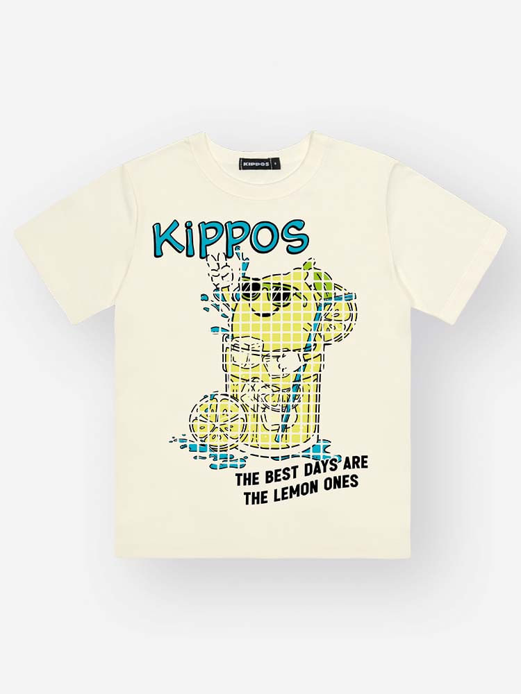 O destaque fica para a estampa divertida com efeito puff, que traz um copo de limonada com toque moderno e cheio de personalidade. Uma proposta alegre que combina com ocasiões casuais, passeios em família, momentos de lazer e brincadeiras ao ar livre.