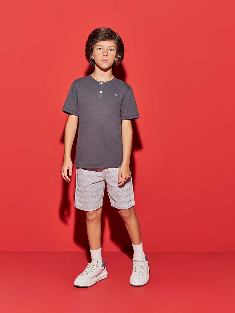 Conjunto infantil composto por camiseta em meia malha e bermuda em tecido plano ecológico, desenvolvido para unir conforto, estilo e praticidade no dia a dia.