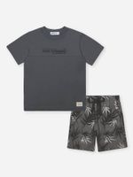 Prepare o guarda-roupa de verão com este conjunto infantil prático e cheio de estilo! A camiseta em meia malha oferece conforto e respirabilidade para os dias quentes, com estampa frontal em alto-relevo e modelagem que proporciona liberdade nos movimentos. Já a bermuda em nylon com elastano traz leveza e flexibilidade, ideal para brincadeiras ao ar livre ou passeios com a família. A estampa tropical da bermuda adiciona um toque moderno e descontraído ao visual. Um look completo e versátil para meninos que gostam de se vestir bem sem abrir mão do conforto!