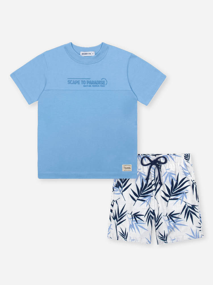 Prepare o guarda-roupa de verão com este conjunto infantil prático e cheio de estilo! A camiseta em meia malha oferece conforto e respirabilidade para os dias quentes, com estampa frontal em alto-relevo e modelagem que proporciona liberdade nos movimentos. Já a bermuda em nylon com elastano traz leveza e flexibilidade, ideal para brincadeiras ao ar livre ou passeios com a família. A estampa tropical da bermuda adiciona um toque moderno e descontraído ao visual. Um look completo e versátil para meninos que gostam de se vestir bem sem abrir mão do conforto!