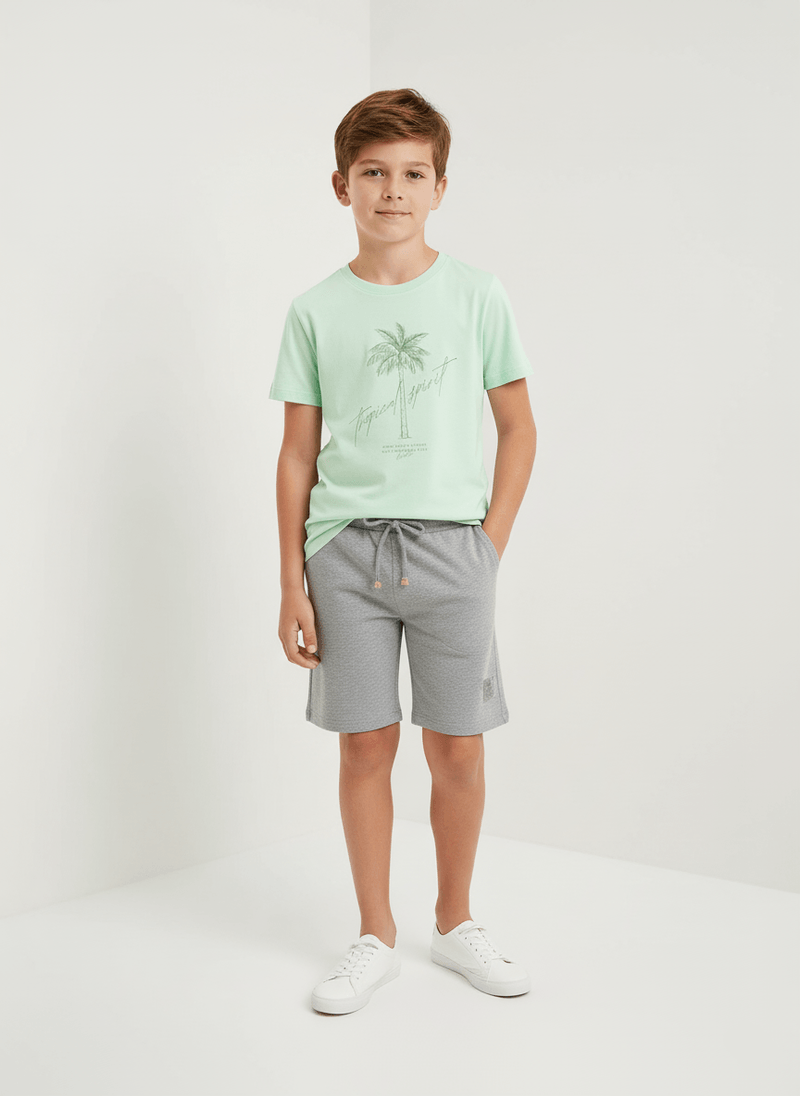 O conjunto infantil une conforto e estilo para o dia a dia dos meninos. A camiseta em meia malha 100% algodão tem toque macio e leve, garantindo respirabilidade e suavidade sobre a pele, ideal para os dias mais quentes. Já a bermuda em moletom 100% algodão oferece maleabilidade, caimento solto e confortável, sem perder a praticidade para brincar e se movimentar com liberdade.