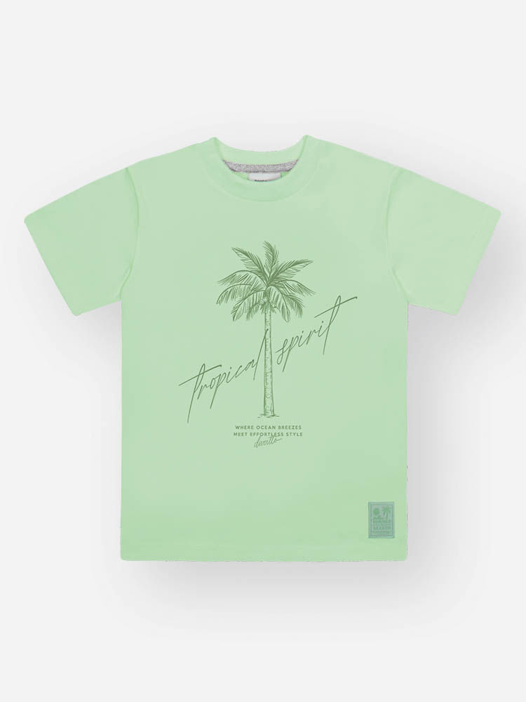 Com estampa tropical moderna de coqueiro, a camiseta traz um ar descontraído que combina perfeitamente com a versatilidade da bermuda em cores neutras e fáceis de coordenar.