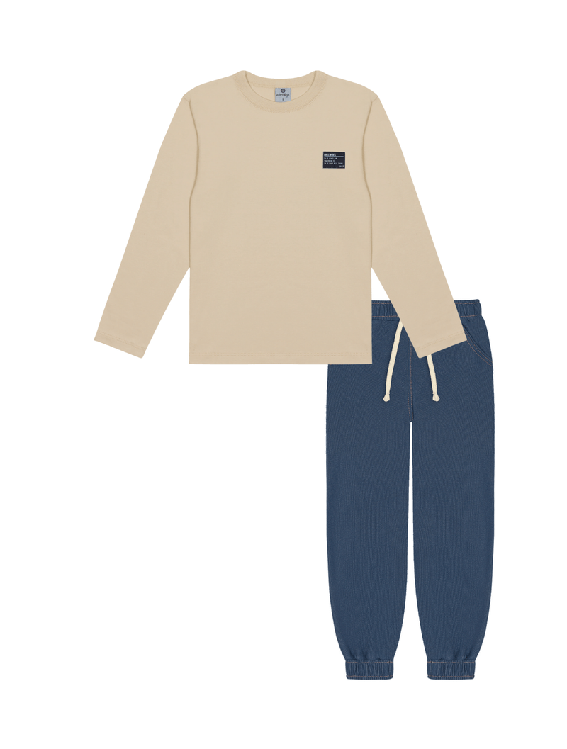 Conjunto Camiseta E Calça Jogger Bege E Azul Jeans Escuro Abrange
