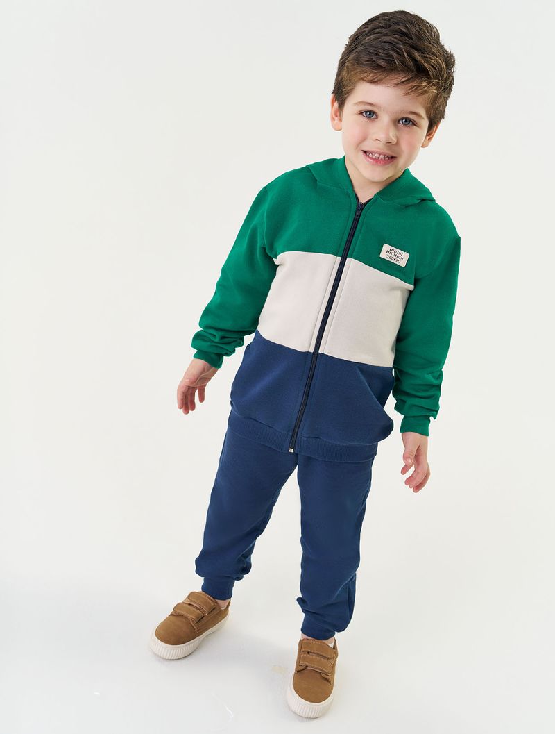 MeninosConjuntos LongosConjunto Jaqueta Color Block e Calça Verde, Natural e Azul Marinho | Abrange