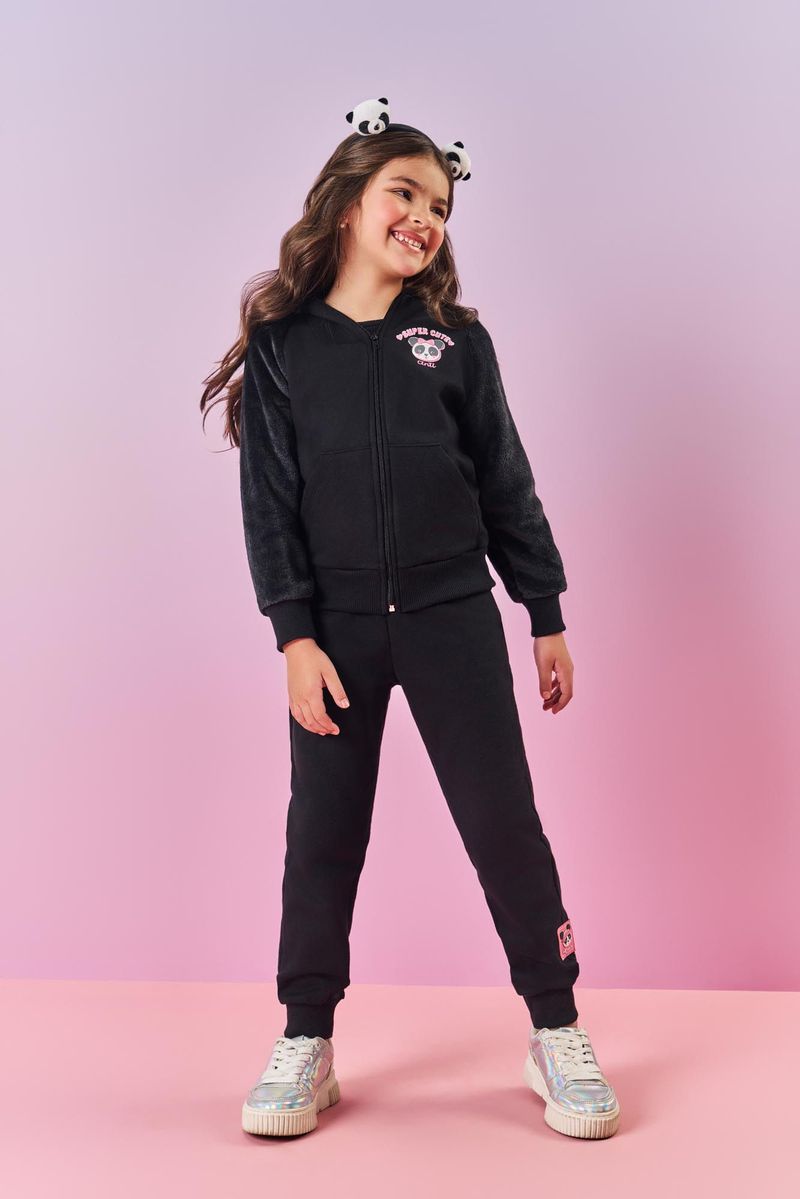 Conjunto superfofo e confortável, ideal para os pequenos que adoram um look divertido e aconchegante. A jaqueta em moletom felpado possui mangas estilo raglan e um capuz em pelo fleece, com orelhas interativas que adicionam charme e diversão. A estampa no peito dá um toque moderno, enquanto os bolsos e o fechamento em zíper garantem praticidade. Os punhos e a barra em ribana proporcionam um ajuste confortável. A calça jogger, também em moletom felpado, tem elástico no cós para maior conforto, com etiqueta decorativa próxima ao punho e punhos em ribana, completando o visual com estilo e suavidade. Ideal para looks casuais e cheios de personalidade. Coleção Inverno 2025. A modelo veste tamanho 06 e possui 1,22cm de altura.