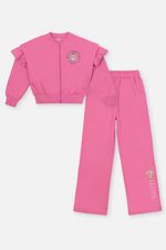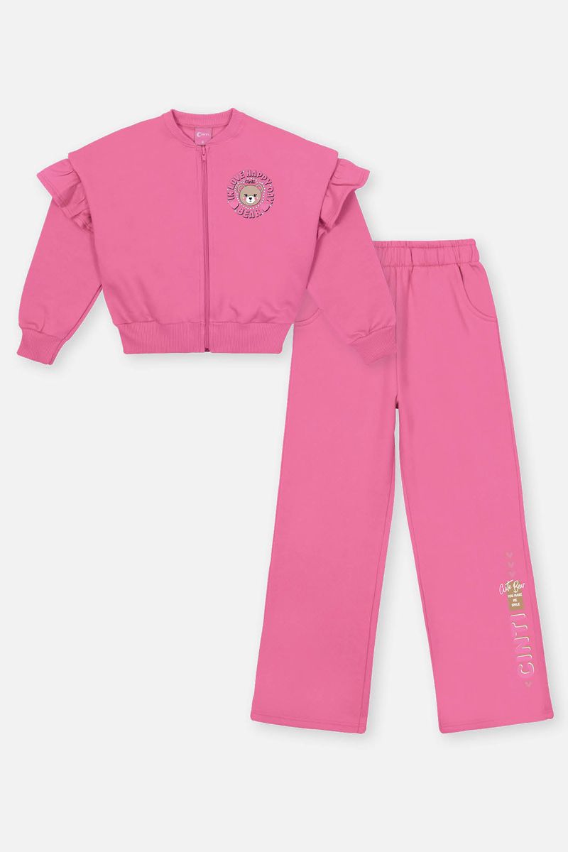 Conjunto moderno e cheio de estilo, perfeito para quem busca conforto com um toque de sofisticação. A jaqueta bomber boxy em moletom felpado apresenta cava deslocada e babado, criando um visual único e descolado. A estampa no peito, adornada com strass, adiciona brilho e charme, enquanto o fechamento em zíper e os punhos e barra em ribana garantem ajuste confortável e prático. A calça wide leg, também em moletom felpado, oferece um caimento fluido e elegante, com elástico no cós para maior conforto. Os bolsos frontais e a estampa na lateral complementam o visual, criando um conjunto perfeito para looks casuais e modernos, cheios de personalidade. Coleção Inverno 2025. A modelo veste tamanho 06 e possui 1,22cm de altura.